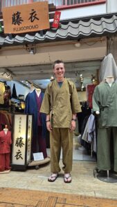 ホーム > 藤衣ブログ(写真館) > お客様写真館 アメリカのコロラド州からご来店いただきました。 久留米作務衣(金茶)のLサイズをお買い上げいただきました。 とても気に入っていただきまして、早速着替えられてお帰りになりました。 とても楽しそうにしている笑顔を見て、こちらもとても嬉しかったです。👍 ありがとうございます。😊 また東京へお越しの際はご来店をお待ち致しております。 藤衣ブログ(写真館)
