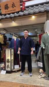 ホーム > 藤衣ブログ(写真館) > お客様写真館 作務衣を着るのは初めてだそうです。😊 久留米の夏用作務衣をお買い上げいただきました。 ありがとうございます。🙇 濃紺色がとても良くお似合いです。👍 お着替えされてお帰りになりました。 次回は冬用作務衣をご検討いただけるとの事でした。👍 ありがとうございます。🙇 是非またのご来店をお待ち致しております。😊 藤衣ブログ(写真館)