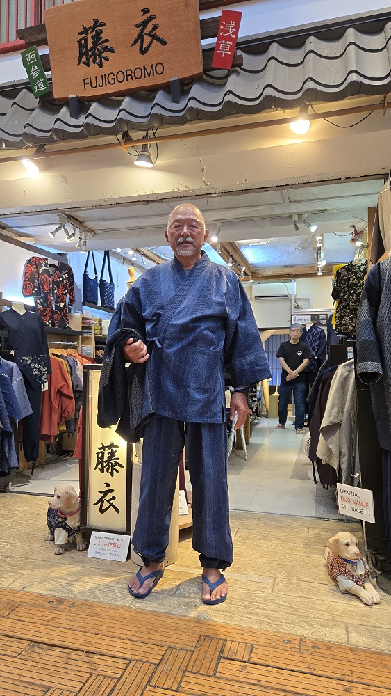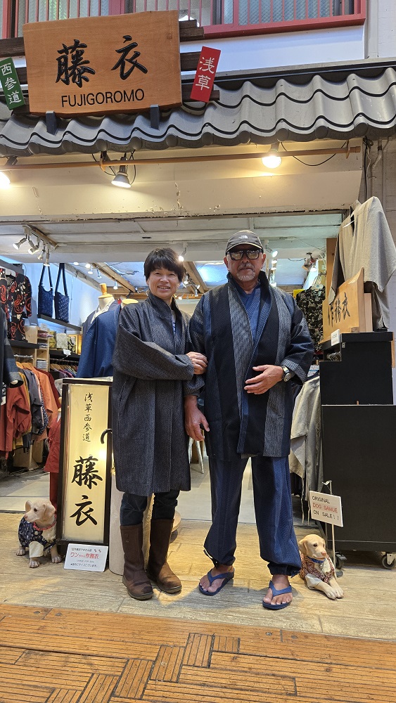 ホーム > 藤衣ブログ(写真館) > お客様写真館 北海道の小樽からご来店いただきました。 ご夫婦柄違いで刺し子ジャケットを お買い上げいただき、ご主人様は、刺し子の作務衣もお買い上げいただきました。 ありがとうございます。🙇 刺し子好きとの事でとても良くお似合いです。👍 これから小樽へお帰りになるということで、お気を付けてお帰り下さいね。 また東京へお越しの際は、ご来店をお待ち致しております。😊 藤衣ブログ(写真館)